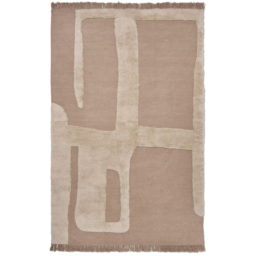 Het Alley vloerkleed 160×250 van Ferm Living heeft een natuurlijke kleur met een abstract kunstwerk erin en franjes aan de boven- en onderkant. Het kleed is 250 centimeter lang, 160 centimeter hoog en 3 centimeter dik. Op verschillende plekken is het kleed ook minder hoog, dit relief zorgt voor een speels effect. Het tapijt is gemaakt van 100% Nieuw-Zeelandse wol. Wij adviseren het vloerkleed alleen met de stofzuiger schoon te maken.