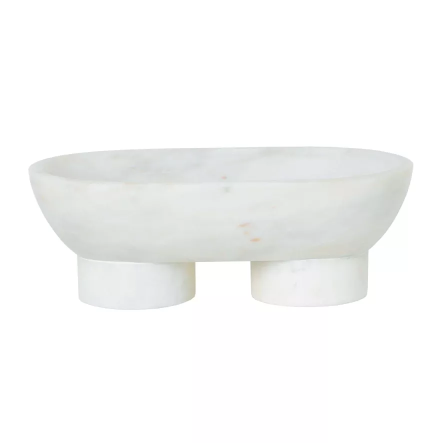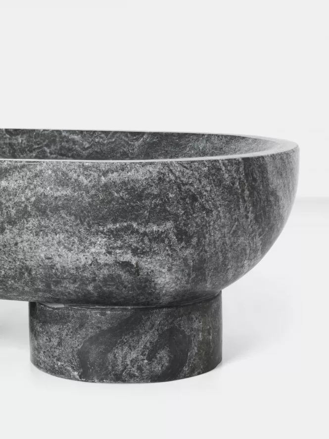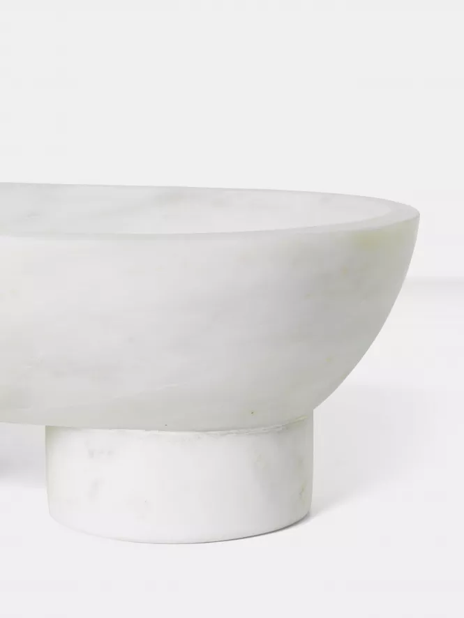 De Alza schaal van Ferm Living heeft een breedte van 25 centimeter, een hoogte van 9 centimeter en een diepte van 14 centimeter. Je kunt voor de schaal kiezen uit een witte variant gemaakt van Indiaas Banswara marmer of voor een zwarte variant van Indian Selvara marmer.