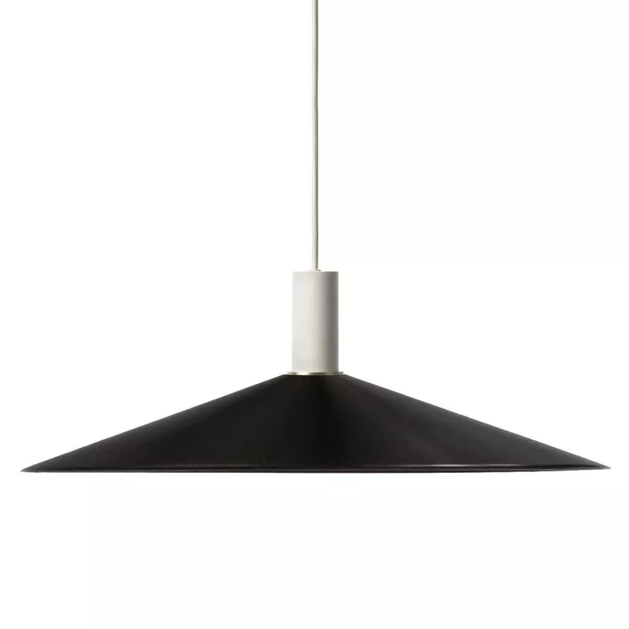 De Ferm Living Angle hanglamp heeft een diameter van 58 centimeter en een hoogte van 10,5 centimeter. Je kan kiezen uit drie varianten: zwart of lichtgrijs gepoedercoat metaal of zwart messing.