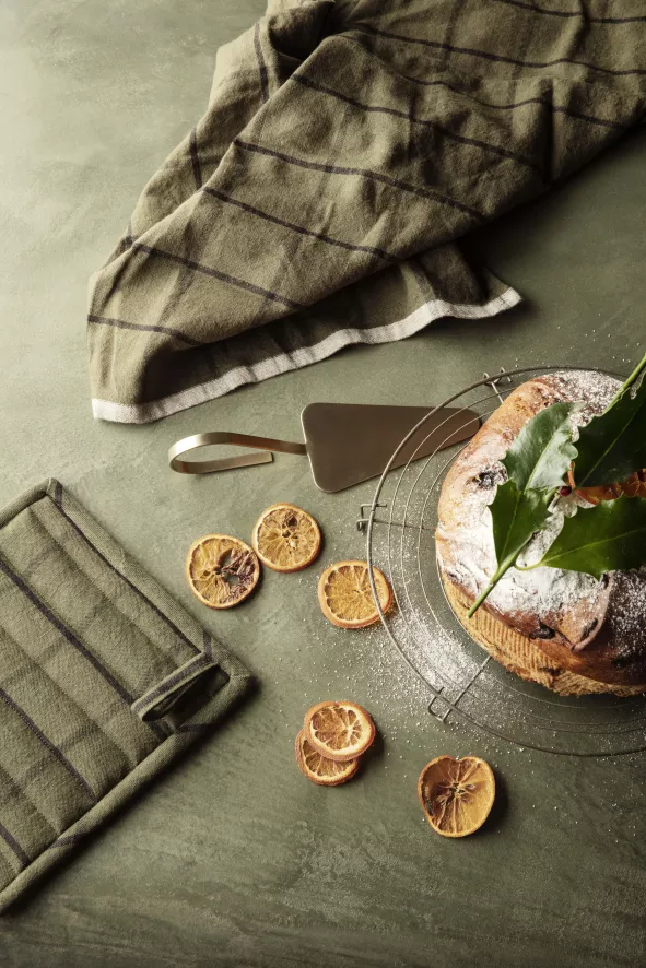 Ferm Living Hale Yarn-dyed Theedoek Golden Brown/Silver Fern