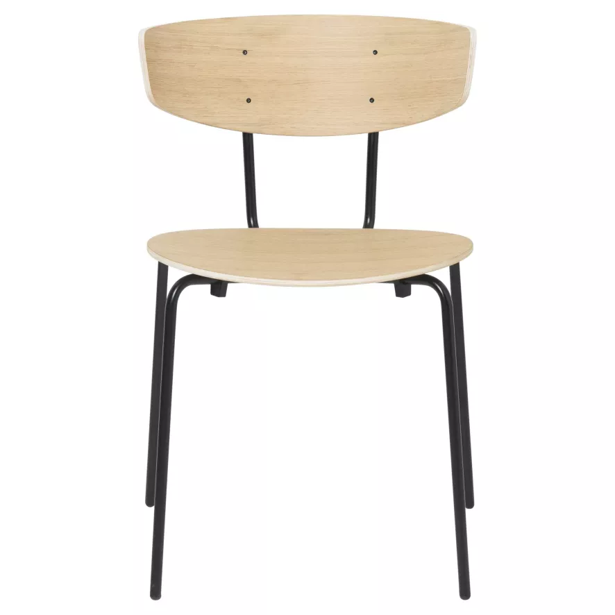 De Herman stoel van Ferm Living heeft een breedte van 50 centimeter, een diepte van 47 centimeter en een hoogte van 74 centimeter. De stoel heeft een zwart metalen frame met een poedercoat. De zitting en rugleuning zijn verkrijgbaar in 4 kleuren: in grijs, zwart en blauw geverfd essenhout of in gelakt eikenhout.