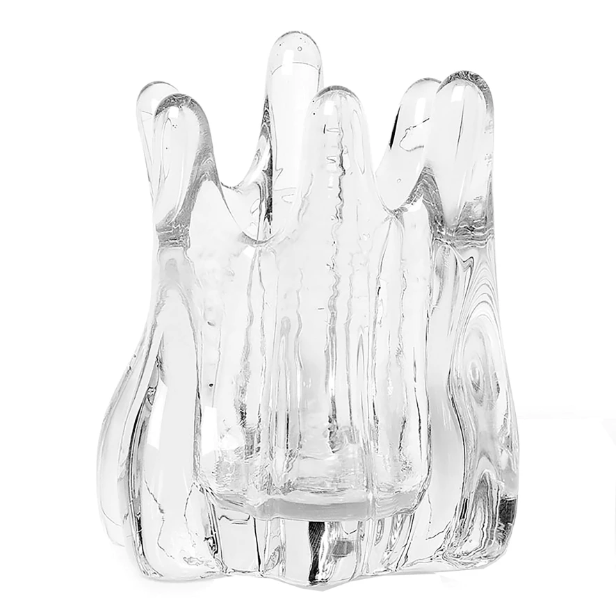 Dit theelicht heeft een diameter van 10 centimeter en een hoogte van 12 centimeter. Er past een standaard theelichtkaars in. Het item bestaat volledig uit mondgeblazen glas en ieder exemplaar is uniek. Om de theelichthouder schoon te maken kun je het laten weken in lauwwarm water.