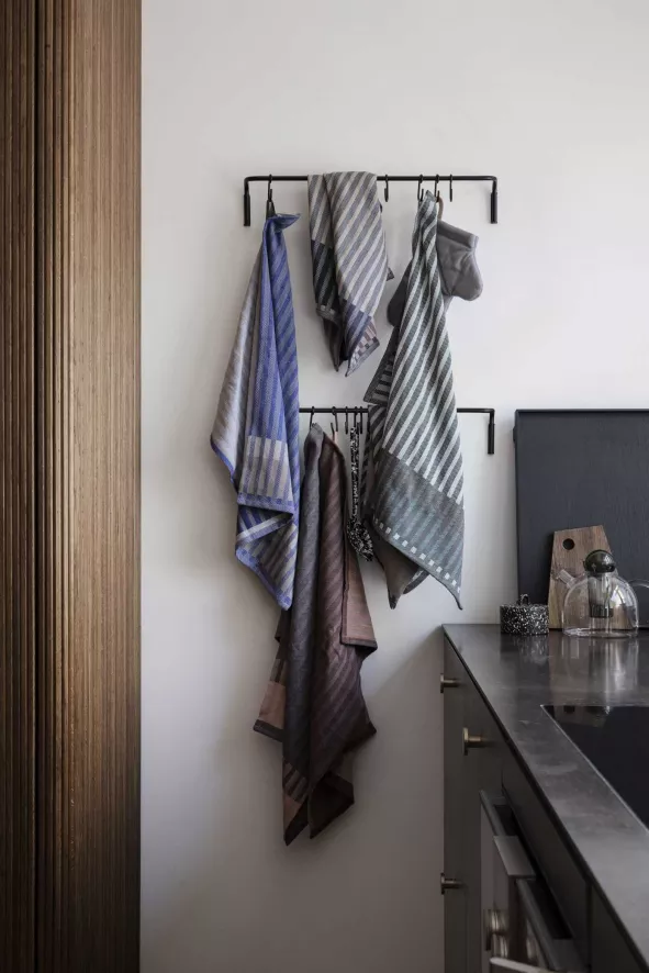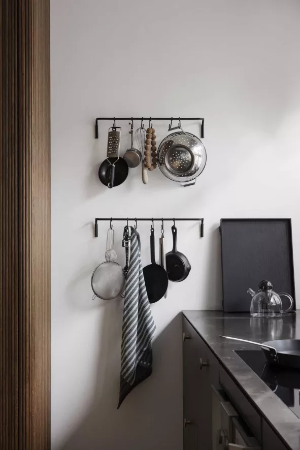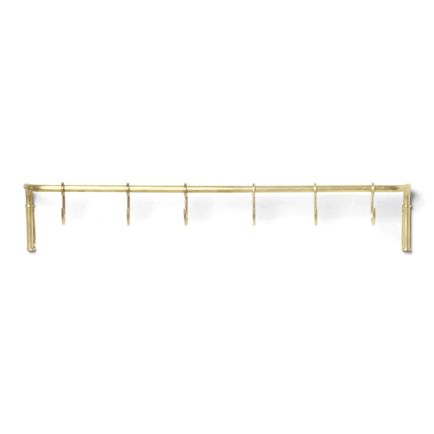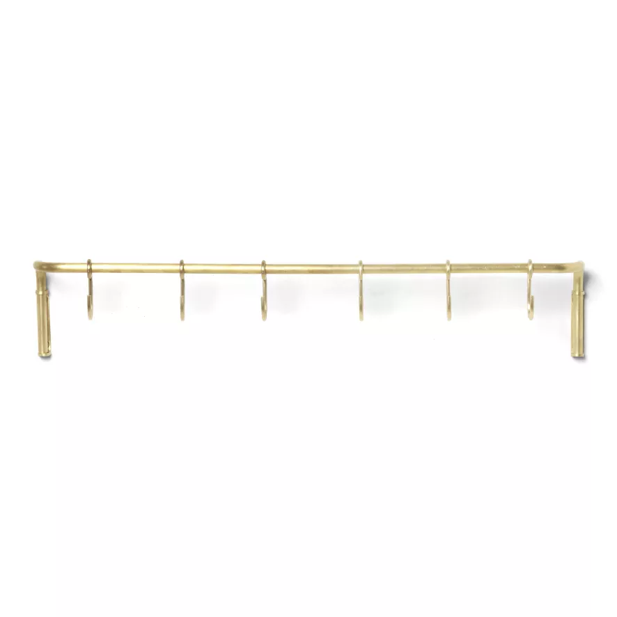 Het Kitchen Rod rek van Ferm Living heeft een breedte van 55,3 centimeter, een hoogte van 9,65 centimeter en een diepte van 6,15 centimeter. Het rek is gemaakt van messing en is verkrijgbaar in een variant van messing of in een zwarte variant. Het rek wordt geleverd met 6 haken.