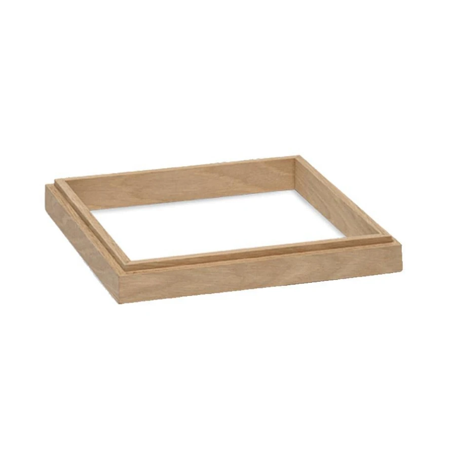 De Miru base woondecororatie van Ferm Living heeft een breedte van 37,8 centimeter, een hoogte van 4,5 centimeter en een diepte van 37,8 centimeter. Het plateau is gemaakt van glas en gebeitst eiken en is twee afwerkingen te verkrijgen: donker en licht. Ferm Living raadt aan de woondecoratie alleen te reinigen met een droge doek.