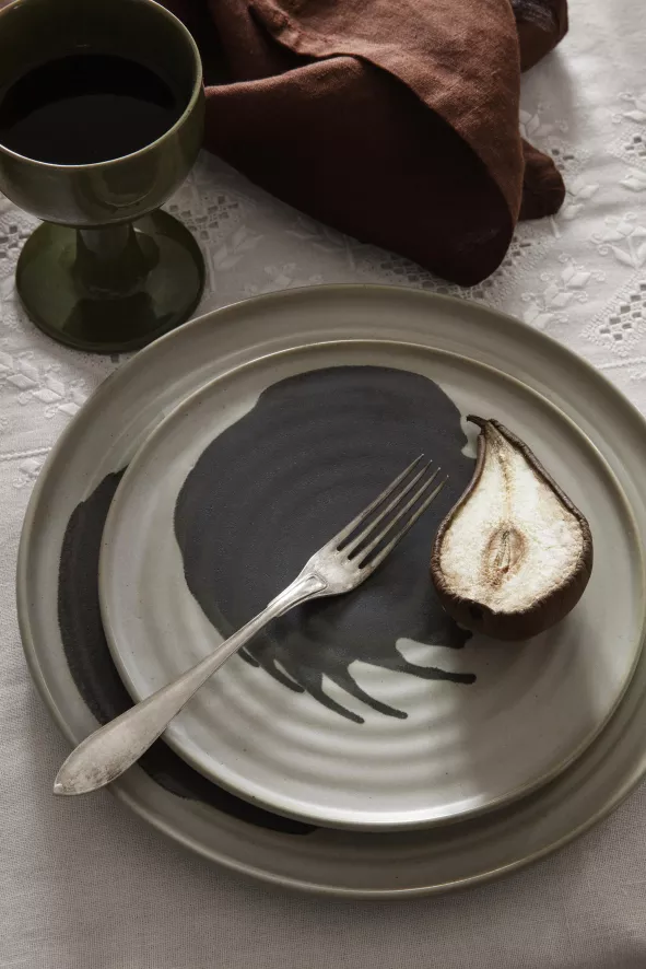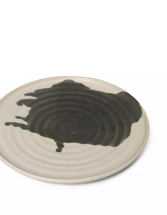 Het Omhu bord Ø21 van Ferm Living heeft een diameter van 21 centimeter en een hoogte van 2 centimeter. Het bord weegt 500 gram en is handgemaakt van keramiek. Het bord heeft een gebroken witte kleur met een houtskolen spuitpatroon. Omhu is vaatwasmachinebestendig.