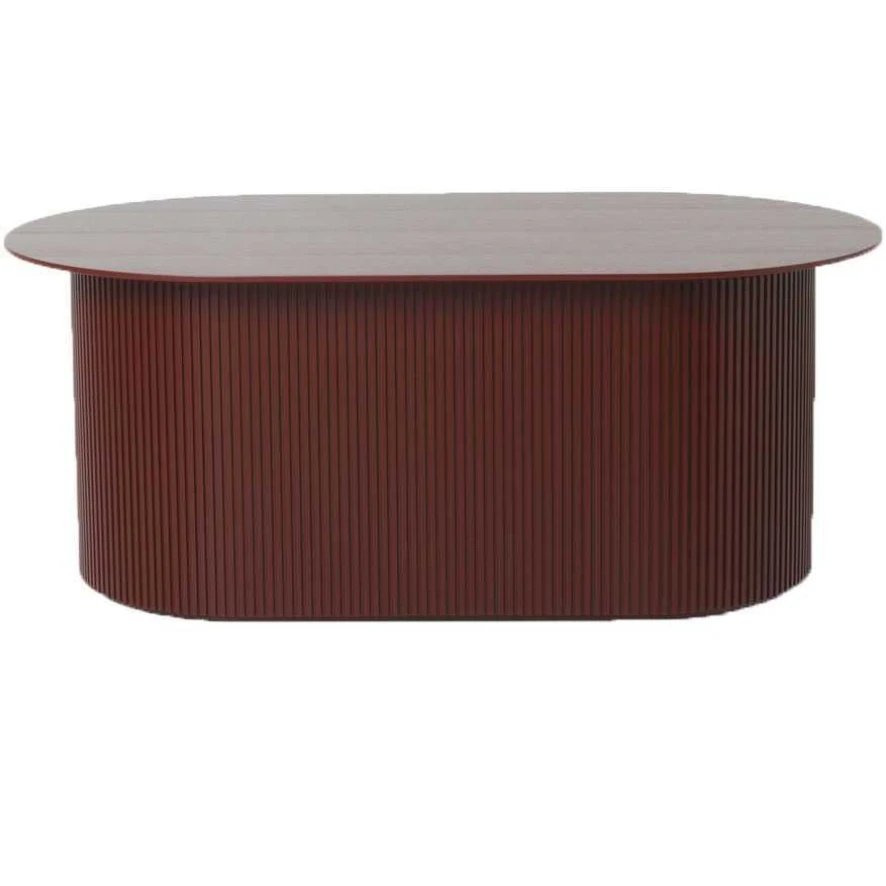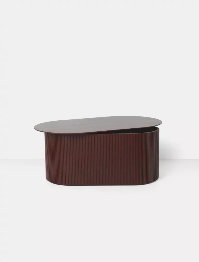 De Podia salontafel van Ferm Living is 95 centimeter lang, 55 centimeter breed en 40 centimeter diep. De salontafel is gemaakt van essenfineerhout en MDF. Maak de tafel schoon met een vochtige doek.