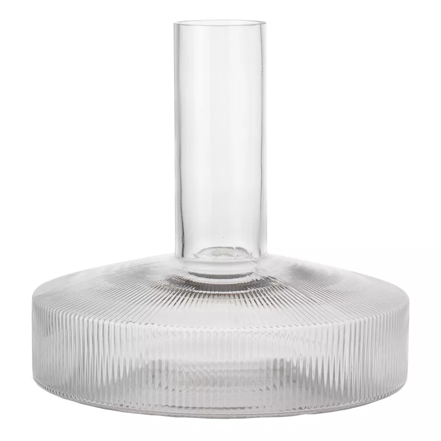 De Ripple wijn karaf 1,1 L van Ferm Living heeft een diameter van 18,5 centimeter en een hoogte van 17,5 centimeter. De karaf heeft een volume van 1,1 liter. De karaf is gemaakt van mond-geblazen glas. De karaf kan in de vaatwasser. De karaf is verkrijgbaar in verschillende kleurvariaties.