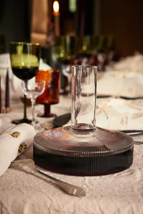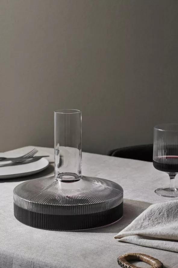 Ferm Living Ripple Wijn Karaf 1,1L Gerookt Glas