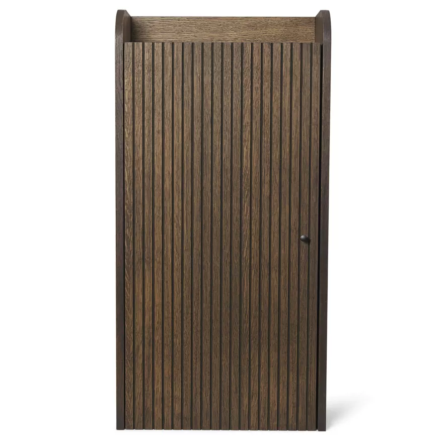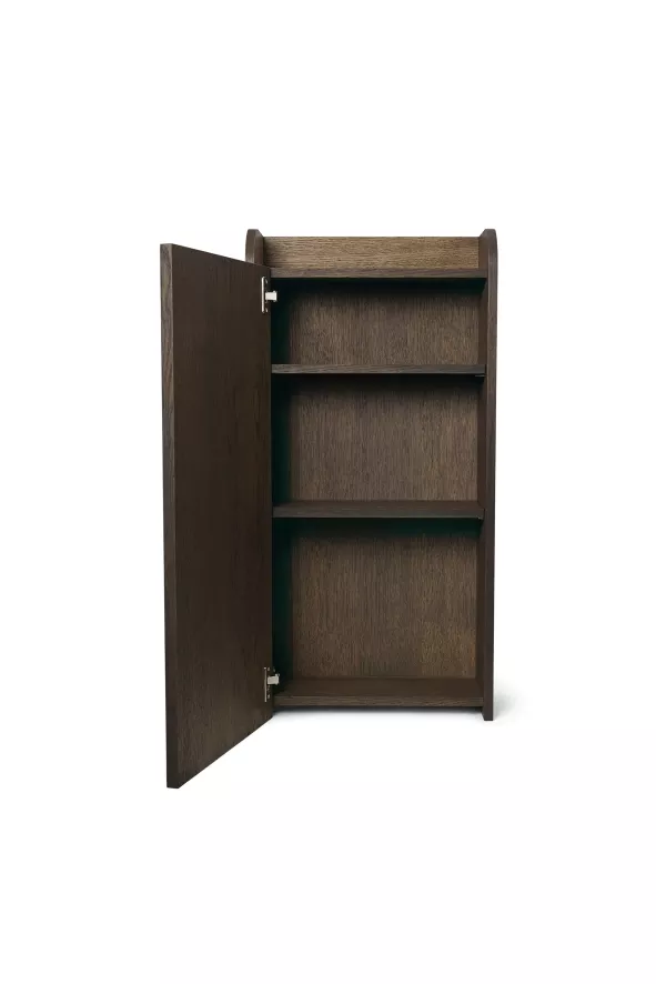 De Sill wandkast van Ferm Living is donkerbruin en heeft een breedte van 42,5 centimeter, een diepte van 19 centimeter en een hoogte van 85 centimeter. De kast is gemaakt van FSC mix-gecertificeerd eiken fineer met MDF kern. Sill weegt 14,2 kilogram. Maak de Sill wandkast schoon met een vochtige doek.